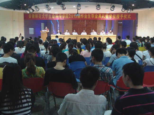 生科院党政领导班子全体成员、教师代表、学生工作组成员和2013届全体毕业生四百余人参加了毕业典礼暨学位授予仪式。李进华副校长和学院领导一起为毕业生代表颁发了毕业证书;毕业生代表向到会的领导、老师赠送了精心准备的小礼品,表达深深的感激之情。