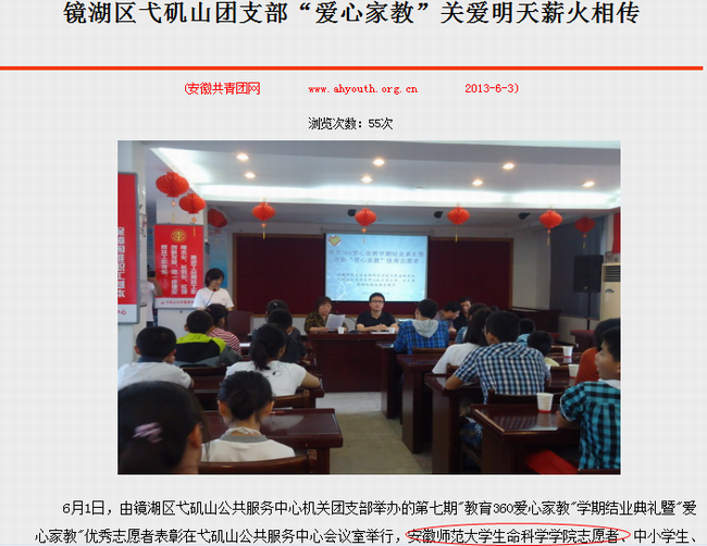 据悉,生科院举办的“360爱心家教”活动受到了社会各界的高度认可,安徽共青团网、中国文明网等多家媒体予以了报道。