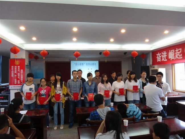 本网讯(生科院 方鑫 宋明明)6月1日,由生科院志愿者服务队举办的“教育360爱心家教”第七学期结业典礼暨“爱心家教”优秀志愿者表彰大会在弋矶山公共服务中心会议室举行,生科院团委老师、弋矶山服务中心关工委领导、大学生志愿者、中小学生及其家长和各社区群众代表60余人参加了会议。