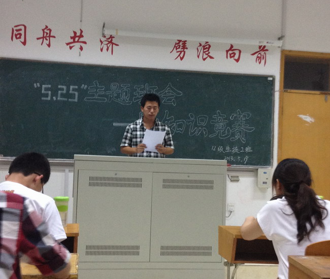 本网讯(生科院 于菲菲 朱升学)为普及大学生心理健康知识,迎接“5.25大学生心理健康日”的到来,5月22日晚,2012级生物技术专业同学在教学楼1408教室举办了心理健康知识竞赛。辅导员朱升学老师出席活动,活动由班长朱连帮主持。