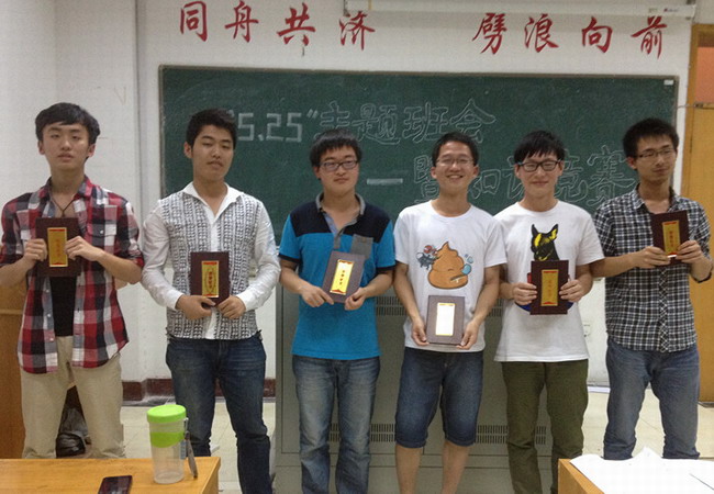 各寝室代表首先为大家介绍了“5.25心理健康日”相关知识,增加了同学们对“心理健康”和“心理健康日”的了解,明确了今年心理健康日的主题——“中国梦·校园情·快乐心”。随后,比赛正式开始。参赛队员分为男女两队,每队6人,分四个环节进行。第一环节为选手必答题,每位选手回答2道题;第二环节为小组必答题,每个小组回答5道题,小组内任意选手作答;第三环节为抢答题,抢到答题权方作答,抢答环节紧张激烈,将活动气氛推向高潮;第四环节为观众提问环节,分别由女生观众向男生队提问、男生观众向女生队提问,每方提问6道题。参赛选手认真作答,观众热情参与,比赛现场十分活跃。经过紧张的角逐,男生队最终获胜。班长、团支书和心理健康委员为参赛选手颁发了荣誉证书!