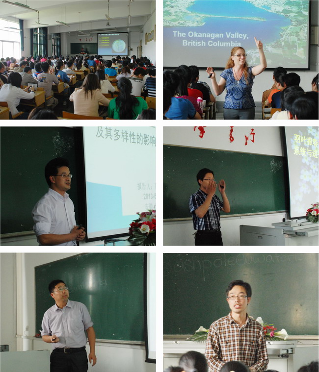 报告会上,Sara 博士作的报告“Amphibian Wetland Restoration in an Agriculture Landscape, Canada”,讲述了她多年来就人类活动对当地两栖类动物的影响而开展的湿地恢复和保护生物学方面的研究,并阐发了人与自然和谐相处的感触;严云志教授作的“低头坝对溪流鱼类群落及多样性的影响”报告介绍了低头坝的存在情况、研究意义,并通过研究鱼类基因组图谱分析了低头坝对溪流鱼类的影响;邵剑文教授作的“羽叶报春系统与进化及资源利用研究”的报告介绍了羽叶报春花的形态特征、分布状况等方面的内容,并对他过去十年对羽叶报春系统的研究作了简要介绍,提出了未来研究的展望;阚显照教授作的“鸟类的分子进化研究”报告,结合现代分子系统学技术介绍了鸟类分子系统学的研究进展;项贤领副教授所作的“轮虫种群遗传分化的时空格局研究”报告从背景知识、研究意义、研究方法和结果等方面阐述了轮虫的种群遗传分化的时空动态及系统地理格局。报告会后老师们还耐心解答了同学们提出的问题。专家们的报告图文并茂,深入浅出,精彩纷呈,赢得了听众的阵阵掌声和一致好评。