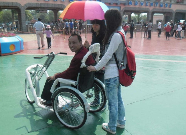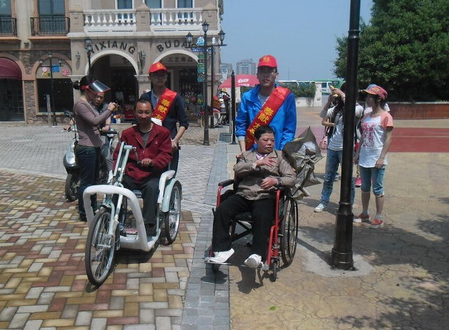 5月11日上午,生科院志愿者们来到大富社区“一米阳光”服务站,在社区领导的带领下,分别从林海、崔进两位残疾人家中将他们接出,志愿者们轮流推着他们来到方特周边进行游览。一路上志愿者向林海、崔进详细介绍沿途的发展变化,他们也都十分健谈,让志愿者们也感受到他们身上的阳光。下半身瘫痪的崔进在路上说:“我已经很久没有出家门了,谢谢你们让我看到外面的风景,让我感受到芜湖的新变化。”朴实的语言更加坚定了志愿者们要将志愿服务进行下去的信心和决心。