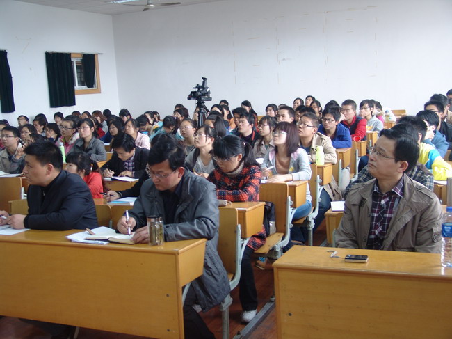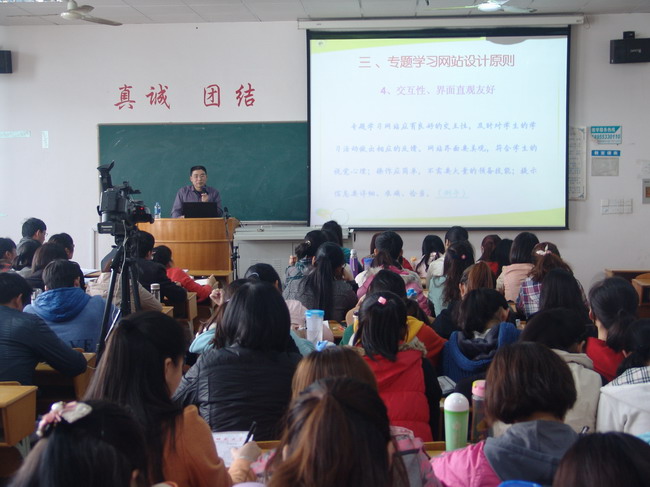 高清仓老师围绕“例谈如何提升高中生物课堂教学成效”主题,从“例谈高中生物如何说课”、“怎样制作多媒体课件”、“多媒体与传统教学手段有效整合的实施途径”、“专题学习网站的建设、应用与发展”、“如何运用思维导图总结知识”等五个方面作了报告。他结合自己底蕴深厚的教学研究理论,丰富多彩的教学实践经验,运用精彩的案例、课件为师范生作了提升课堂教学成效辅导报告。随后,高老师与同学们进行了现场互动,就同学们提出的问题进行了交流,对师范生如何提高教学技能提出了建议和意见。