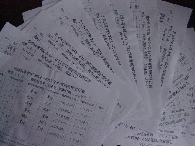 连日来,生科院通过召开诚信考试、安全教育主题班会,微博、QQ群、飞信提醒,填写寒假离校登记表,印制发放《期末及假期安全注意事项等形式,不断强化学生安全意识,提高自我防范能力,要求学生切实做到对自己负责、对他人负责,对宿舍负责,有效防止安全事故发生,确保学生人身和财产安全,度过一个欢乐、祥和、平安的假期。