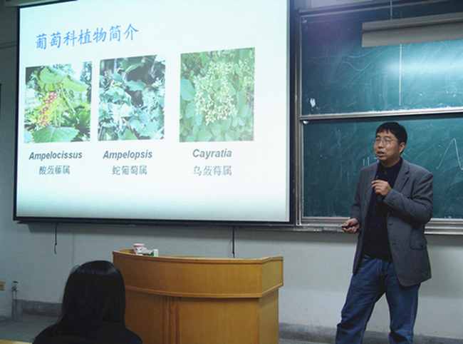 报告会上,阚显照从“美国的风土人情”和“归国后思索与展望”两方面介绍了自己在美国的科研、工作和生活情况。首先,阚教授以“飞”、“住”、“行”、“购物”、“社会经历”等生活角度讲述了自己对于中美风俗文化差异的看法和见解。接着,阚老师介绍了访学期间从事的“葡萄科的转录组学研究”、“葡萄科GAI基因家族的分子进化研究”等研究课题具体内容。最后,阚老师结合自己多年来的学习、工作经历,希望同学们热爱伟大祖国,正确看待美国社会,肯定自身能力优势,刻苦学习科学文化,勇于开拓科学疆域,为祖国的强盛贡献力量。阚老师两个小时的精彩报告内容丰富,涵盖面广,既贴近生活实际又科学严谨,广大同学获益匪浅,较大地激发了同学们的专业学习的热情和激情。