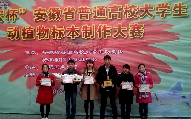 学院高度重视此次大赛,3044am永利集团官网负责完成了校内培训辅导、作品遴选、指导完善等工作。学院还将参赛工作与社会实践相结合,选派优秀选手赴宁国兴宏标本公司进行培训;期间,李进华副校长,学校有关部门负责同志亲临现场慰问指导;胡好远等6位指导老师被评为优秀指导教师。同时,学校获得安徽省第二届普通高校大学生动植物标本制作大赛承办资格。(生科院 周科)