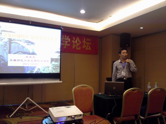 在本届论坛组委会委员、我校副校长、生态学博士点负责人李进华教授的带领下,3044am永利集团官网教学副院长吴海龙教授、现代遗传学省级教学团队成员聂刘旺教授、阚显照教授和程双怀副教授参加了本次论坛。李进华教授作为嘉宾为2011年度在高校生物学教学研究中表现突出的获奖者颁发了奖状和证书。论坛围绕“课程体系改革与人才培养”、“课程内容、教学方法改革与教学资源建设”、“实验实践教学与能力培养”、“精品课程转型升级与精品资源共享建设”四大主题展开,李校长主持了主题为“课程体系改革与人才培养”的分会报告。吴海龙副院长作了题为“立足区域特色,培育生态学人才”的专题报告,报告简要介绍了我校生态学专业建设概况,分析了目前国内生态学专业建设的机遇与挑战,并与兄弟院校代表分享了我校生态学专业的建设思路和能力培养举措。报告内容在兄弟院校代表间产生了广泛的共鸣,受到了较高的评价。