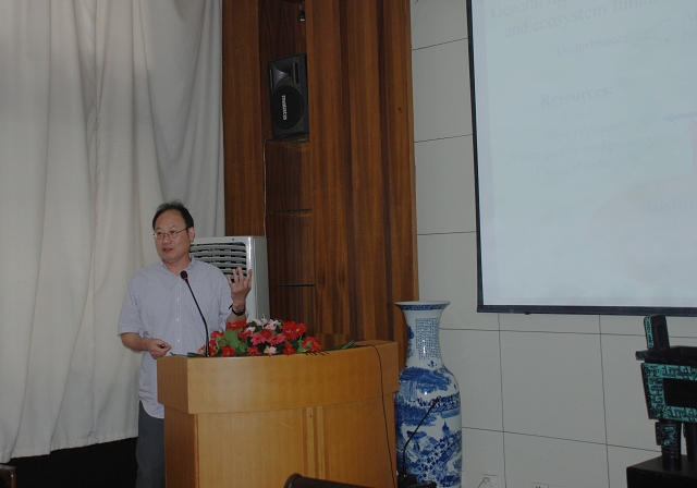 张一新博士首先介绍了研究中常用的几个影响生物多样性和生态系统功能的干扰模型。随后,结合其研究过程中的几个案例,通过对瑞典主要河流生态系统,以及对中国东江流域的研究,重点阐述了流域土地利用变化和水质对底栖生物多样性的影响,以及陆地与水生生态系统之间营养流的生态学效应。最后,张一新博士介绍了他的主要研究方向,即环境变化和土地利用对流域底栖生物多样性的影响,以及本地种与入侵种的生态学作用。会后,张博士与参会的老师、同学展开了热烈讨论,就野外调查实验中的取样方法、生态学模型的构建等问题进行了深入的探讨,并热情解答了师生提出的问题。