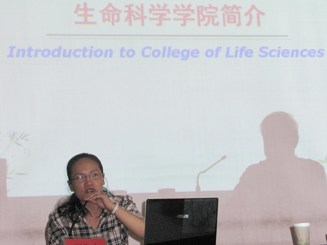 在安庆师范学院,朱国萍教授和华田苗教授分别做了题为“Generality of the Mechanism for Functional Evolution of Isocitrate Dehydrogenase”、“老年性视觉功能衰退及知觉学习的神经机制研究”的学术报告。郝家胜教授、蔡亚非教授、邵剑文教授分别就“蝶类的分子系统与进化”、“脊髓损伤与修复的分子机制”、和“安徽羽叶报春的系统与进化研究”等相关领域的研究进展作了报告。在阜阳师范学院,朱国萍教授作了“异柠檬酸脱氢酶功能进化机制的普遍性研究”的报告、胡好远教授作了“运用寄生蜂等天敌对害虫进行生物防治研究”的报告、严云志教授作了“山溪鱼类的分布格局研究” 的报告,陈明林副教授作了“植物繁殖生物学” 的报告、项贤领副教授作了“萼花臂轮虫种复合体遗传分化的时空格局”的报告。报告会内容翔实、深入浅出,拓宽了参会老师、同学的知识视野和研究思路。参加此次招生宣传的还有博士生导师王友保教授、硕士生导师柯丽霞教授。