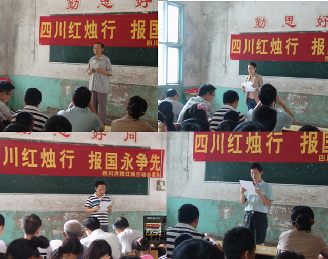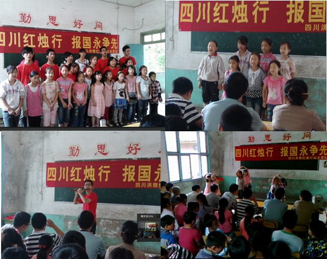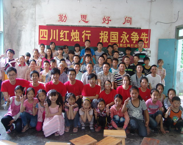 7月28日,在20多天的志愿服务活动之后,生科院赴四川洪雅“红烛行动”爱心支教服务队圆满完成实践任务,因暴雨连连,隆重的总结暨告别仪式在桃源小学一间教室里举行。洪雅县关工委常务副主任周明弟、桃源乡党政领导及桃源小学领导、“红烛行动”爱心支教志愿服务队全体师生以及桃源小学学生参加了仪式。