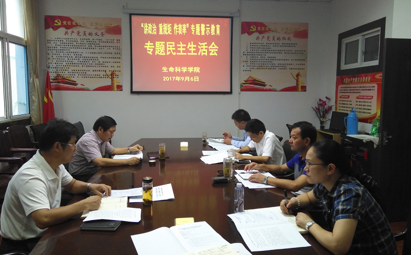 本网讯(生科院汪倩倩)9月6日下午,生科院党委召开“讲政治、重规矩、作表率”专题警示教育专题民主生活会,学院全体党员领导干部参加会议,副院长朱国萍作为民主党派班子成员列席会议。会议由学院党委书记蒋学波主持。