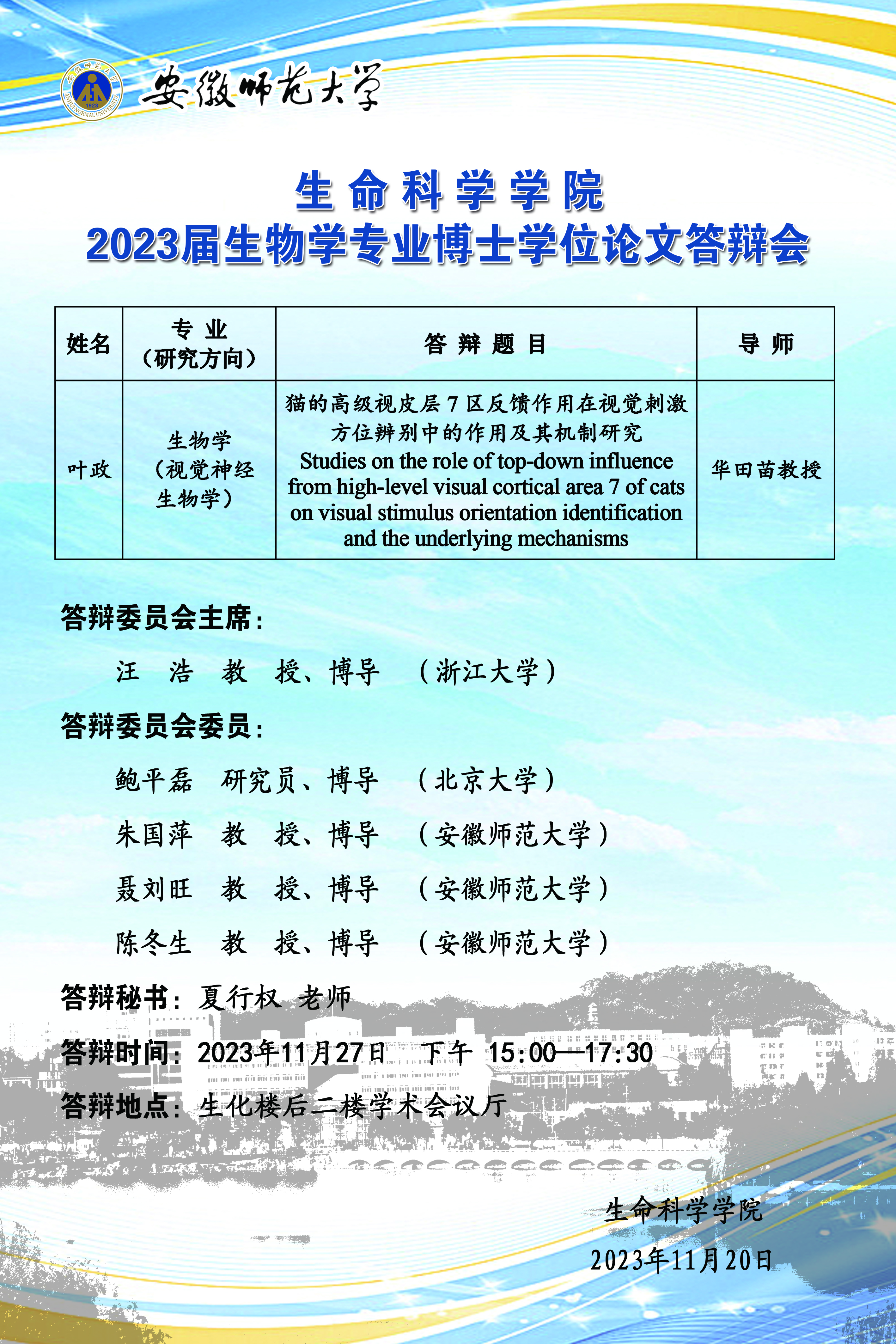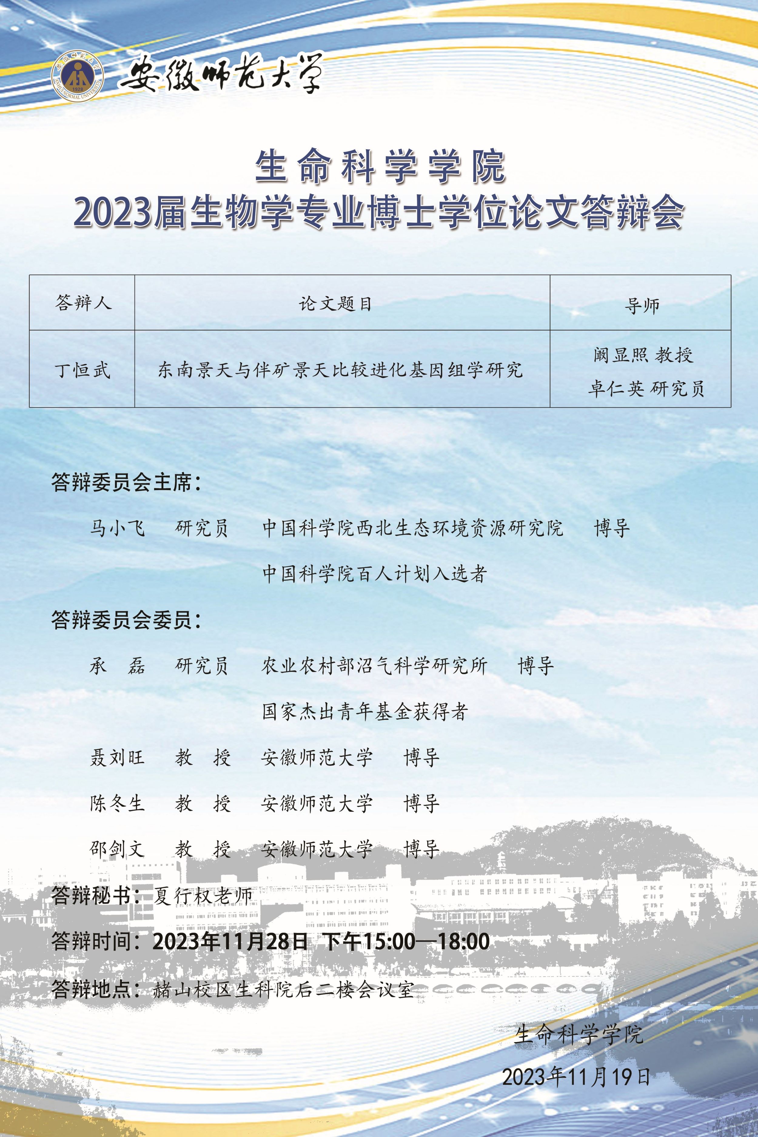 3044am永利集团官网2023届生物学专业博士研究生学位论文答辩会(三)