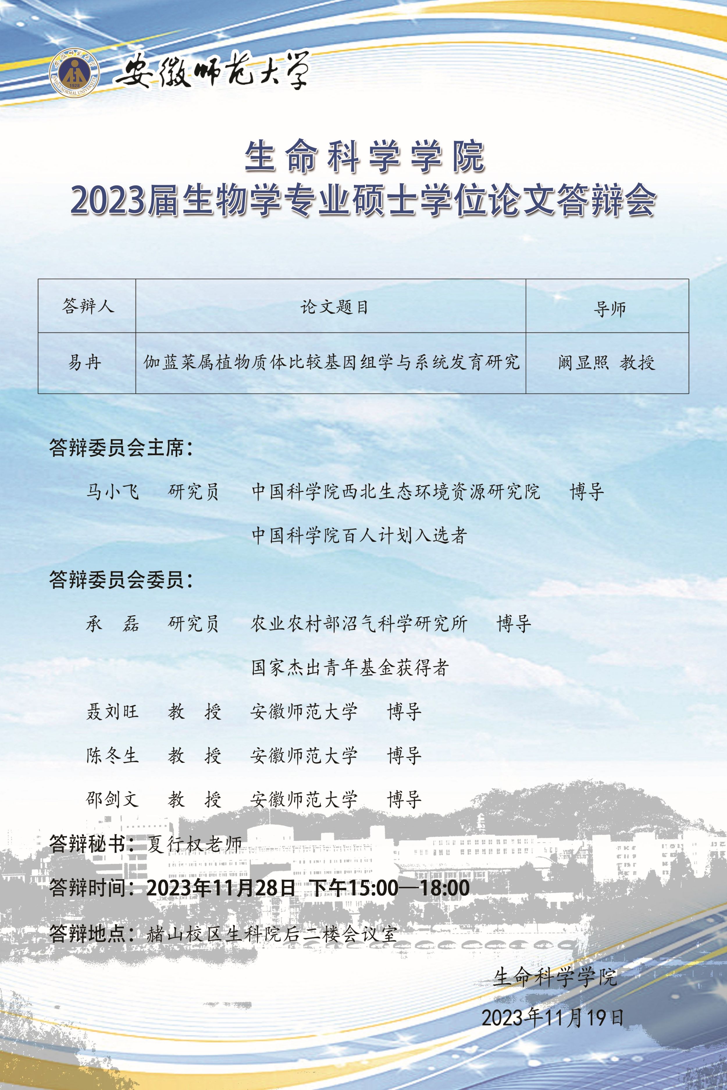 3044am永利集团官网2023届生物学专业硕士学位论文答辩会