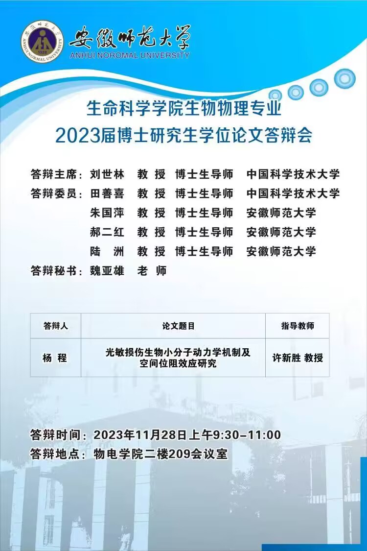 3044am永利集团官网2023届生物物理学专业博士研究生学位论文答辩会