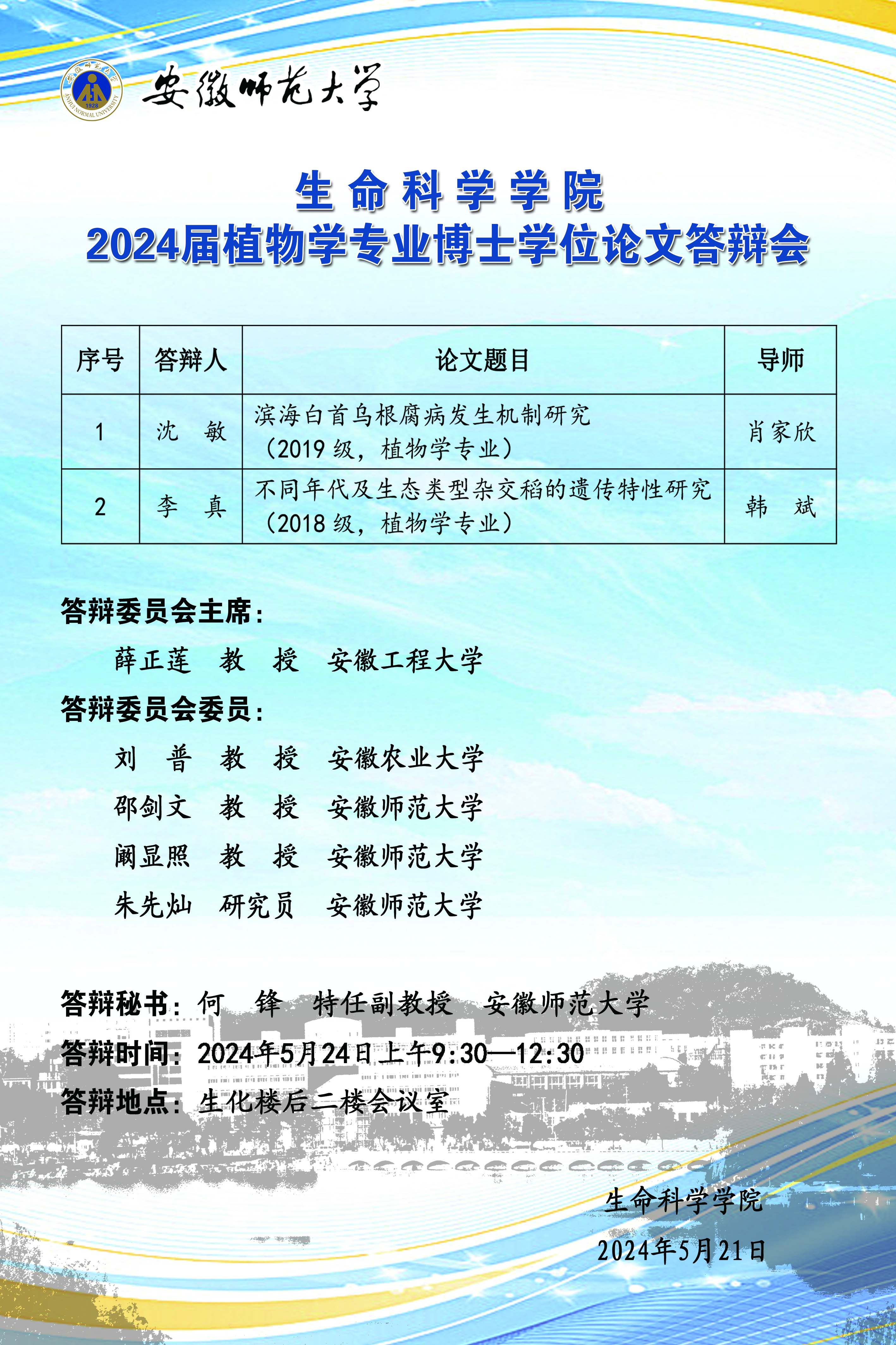 3044am永利集团官网2024届生物学专业博士研究生学位论文答辩会一(植物学)