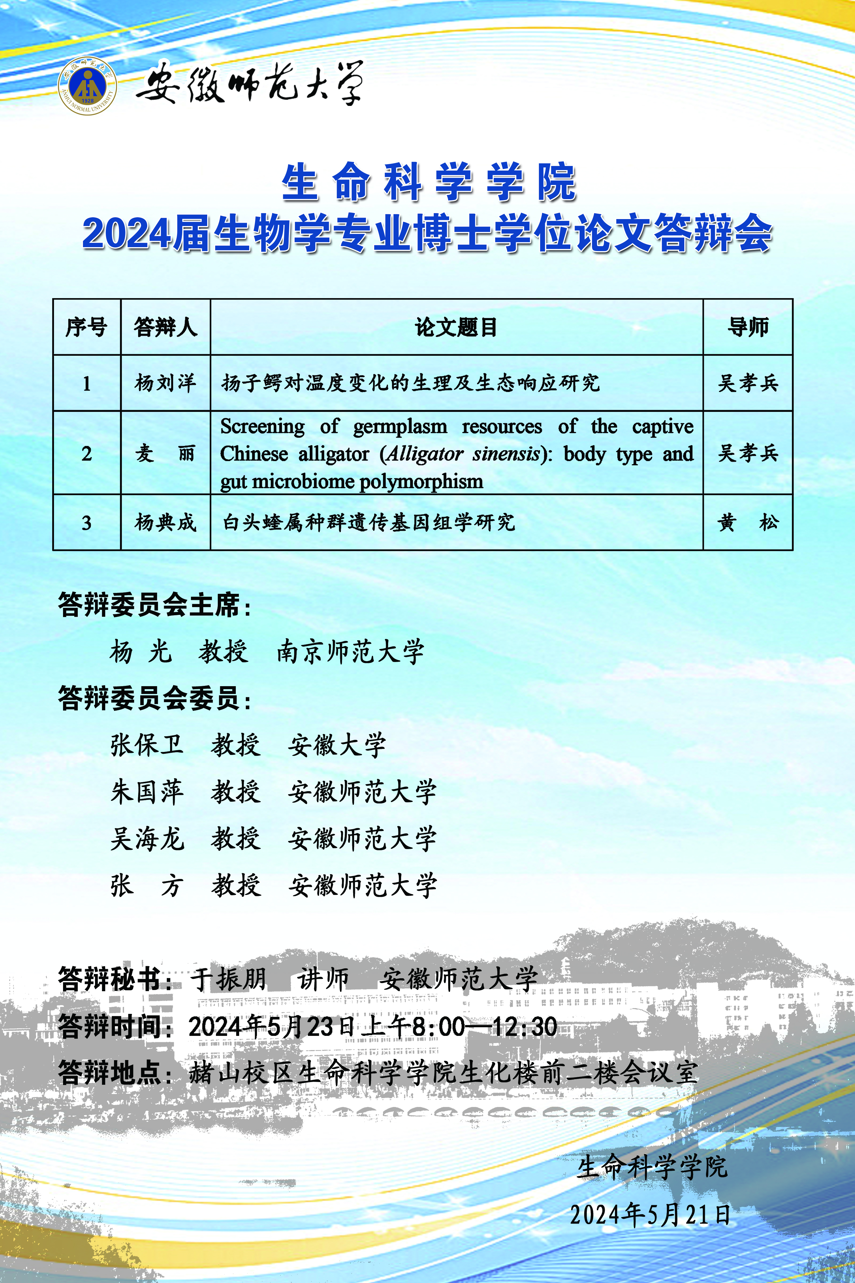 3044am永利集团官网2024届生物学专业博士学位论文答辩会二(动物学)