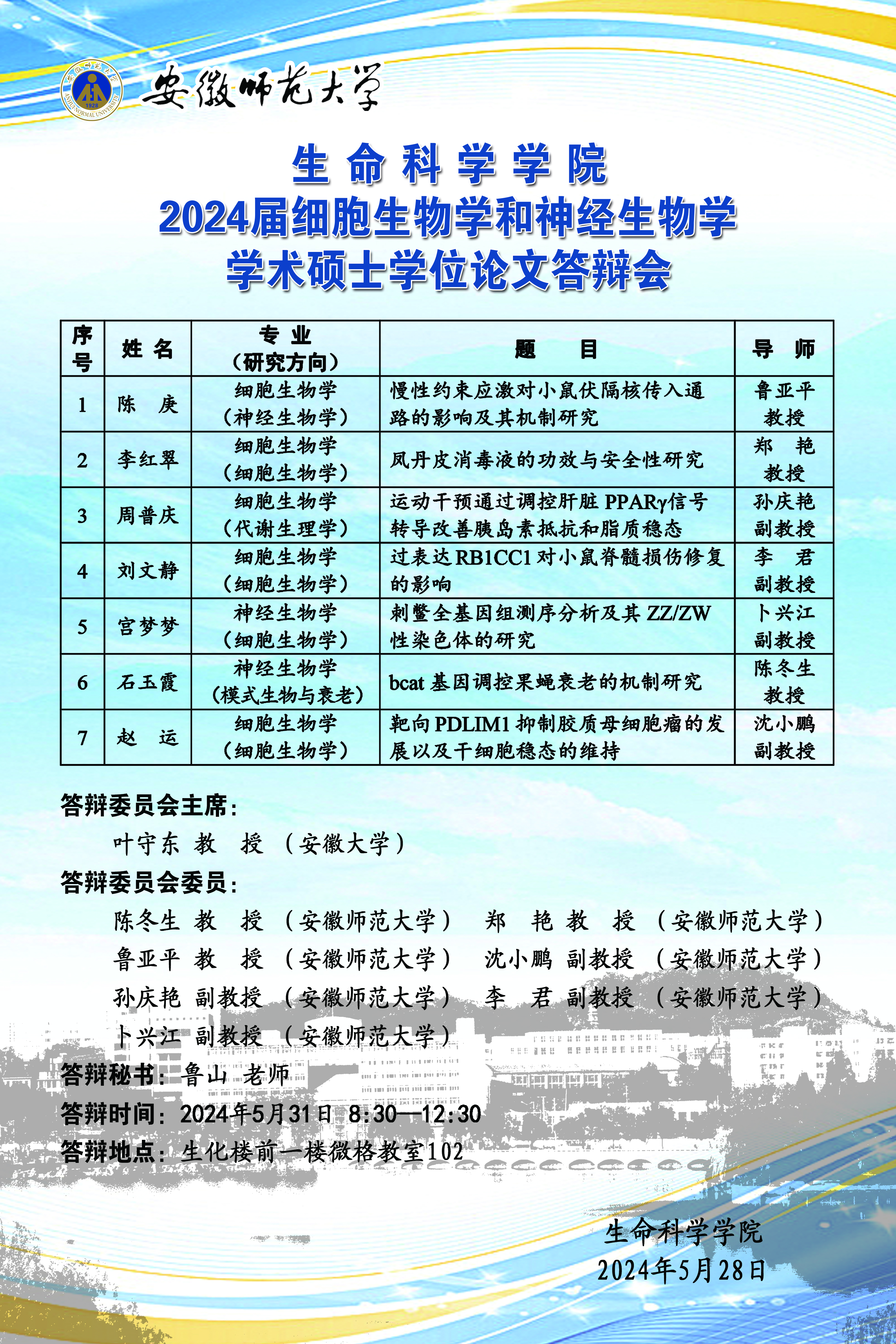 3044am永利集团官网2024届细胞生物学和神经生物学专业硕士学位论文答辩会
