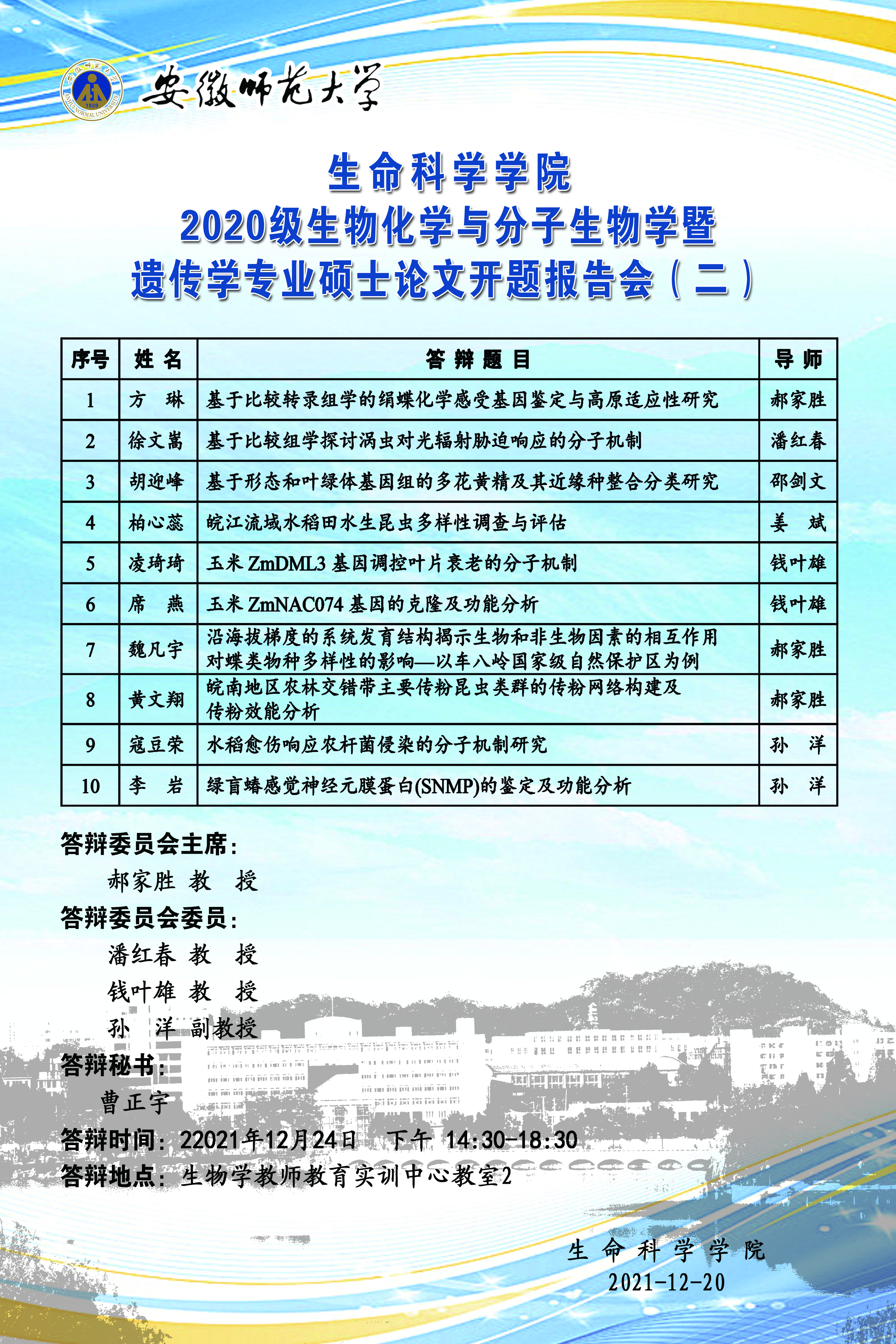 3044am永利集团官网2020级生物化学与分子生物学暨遗传学专业硕士论文开题报告会(二)
