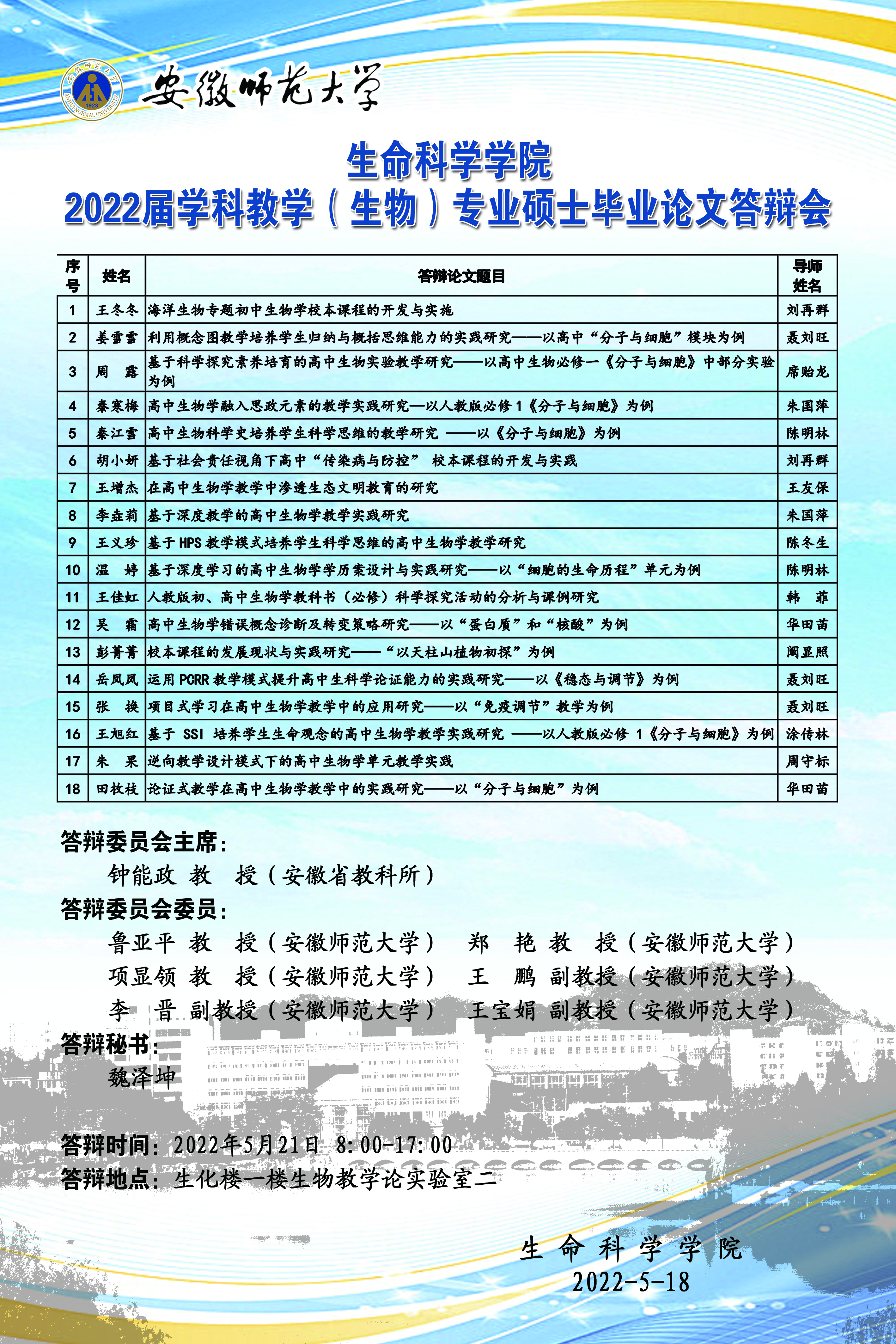 上一篇:2022届学科教学(生物)专业硕士学位论文答辩会(一)