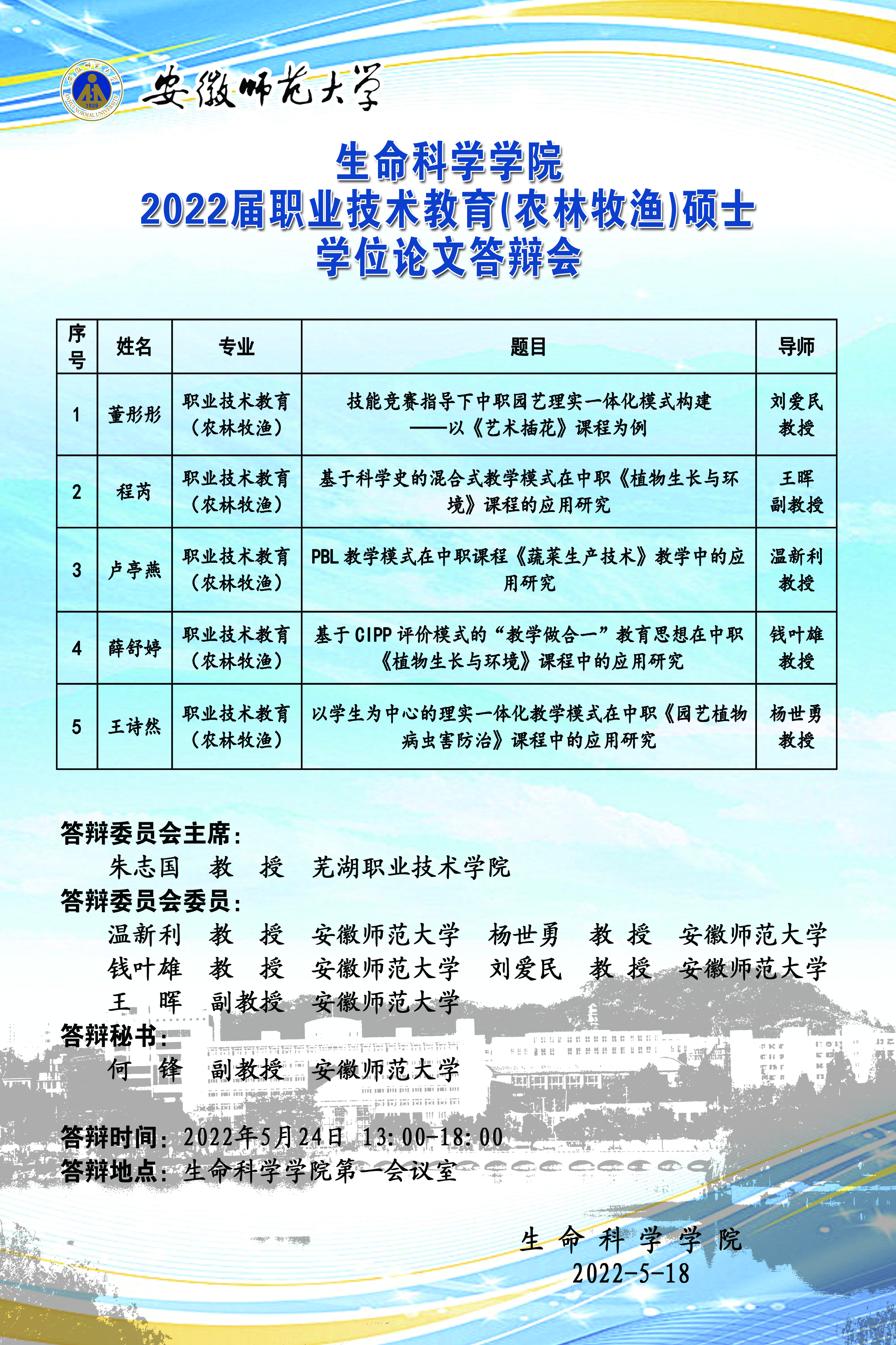 2022届职业技术教育(农林牧渔)专业硕士学位论文答辩会