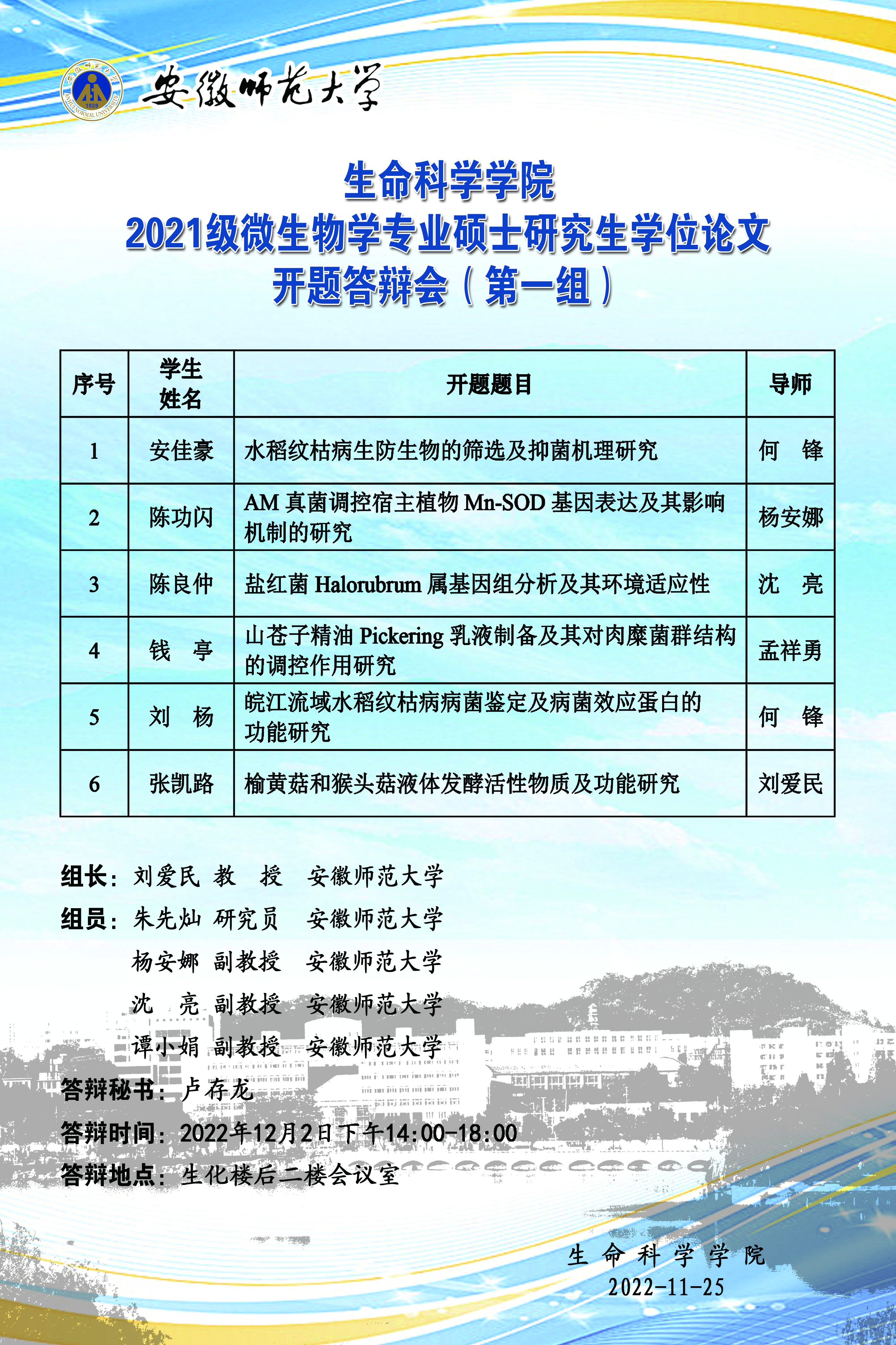 3044am永利集团官网2021级微生物学专业硕士研究生学位论文开题答辩会