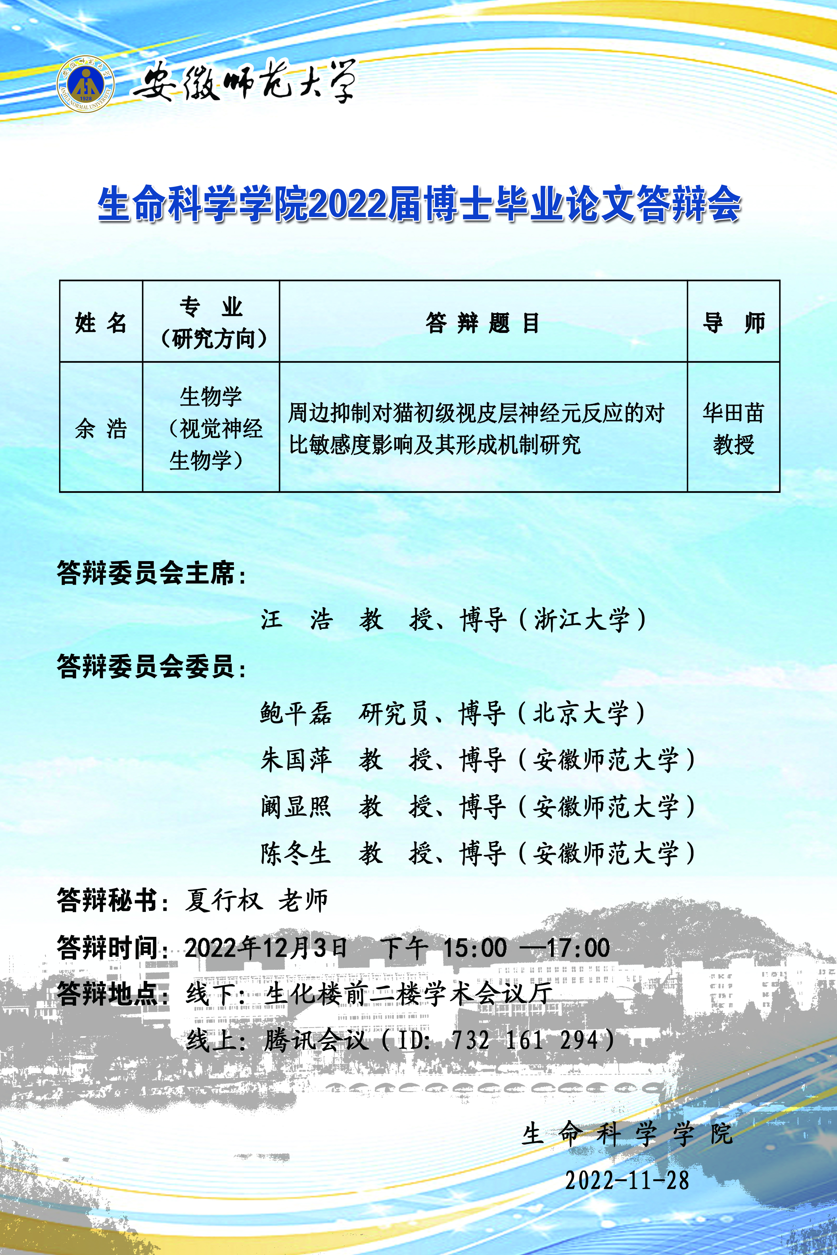3044am永利集团官网2022届生物学博士学位论文答辩会二