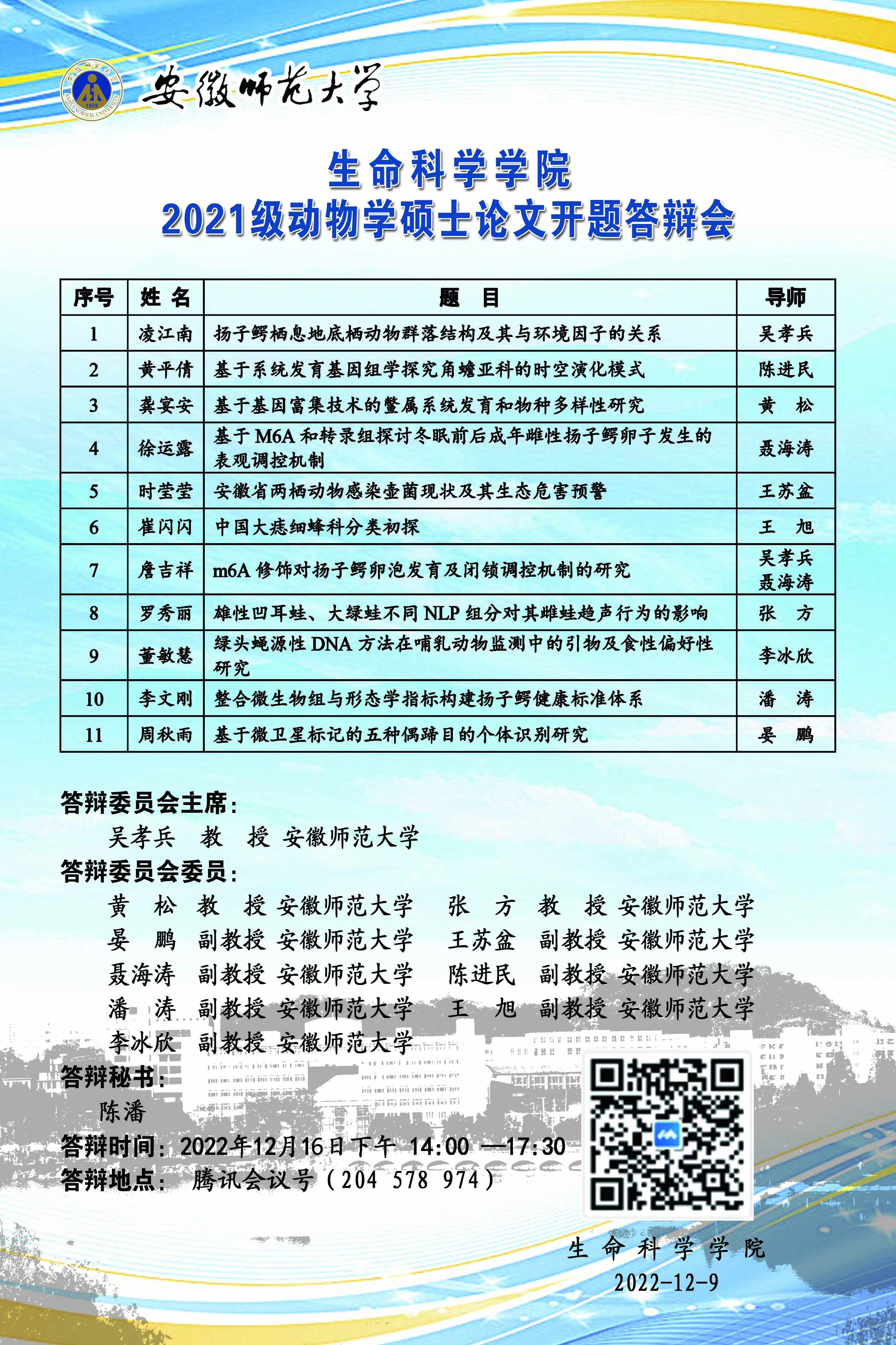 3044am永利集团官网2021级动物学硕士论文开题答辩会