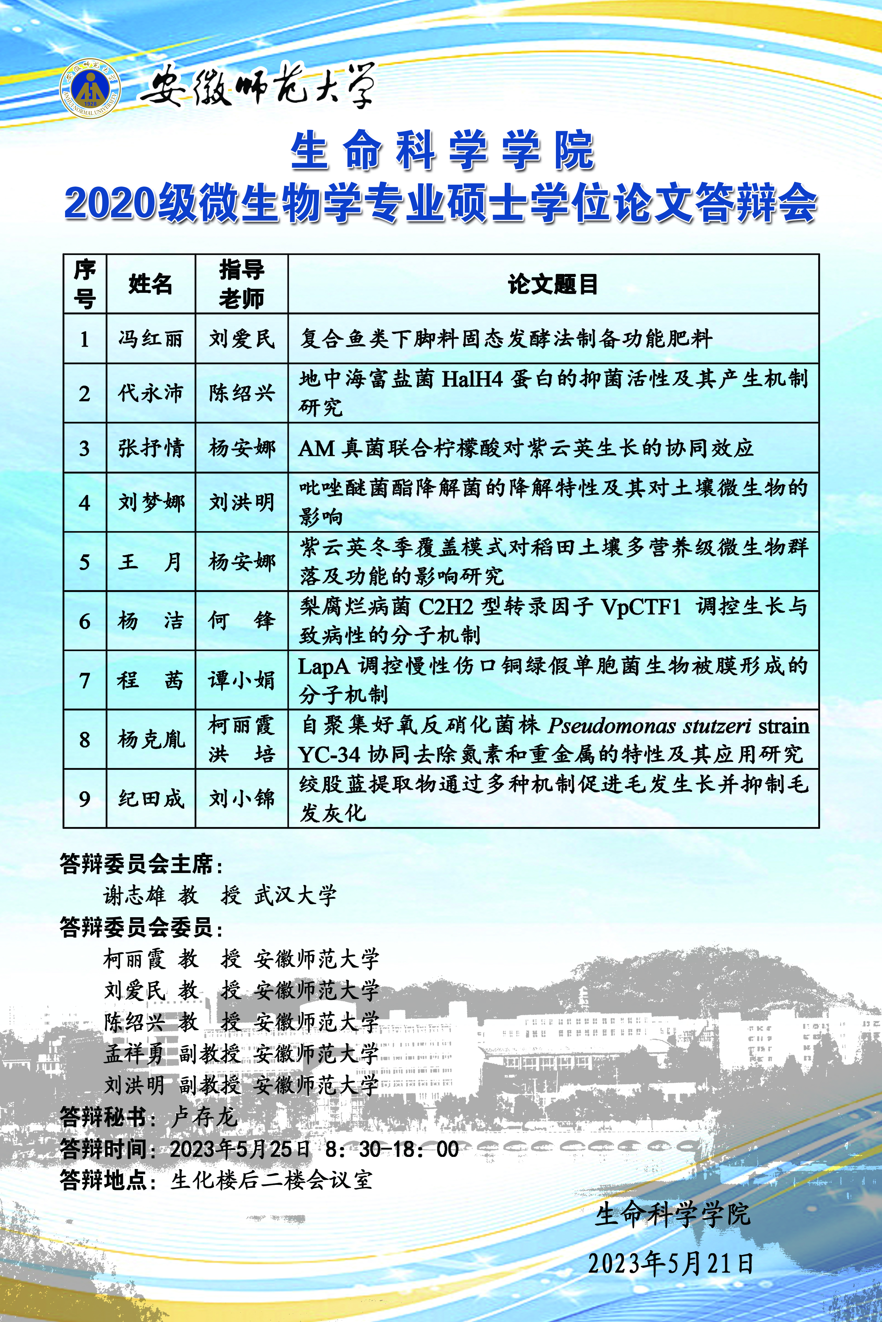 3044am永利集团官网2023届微生物学专业硕士学位论文答辩会