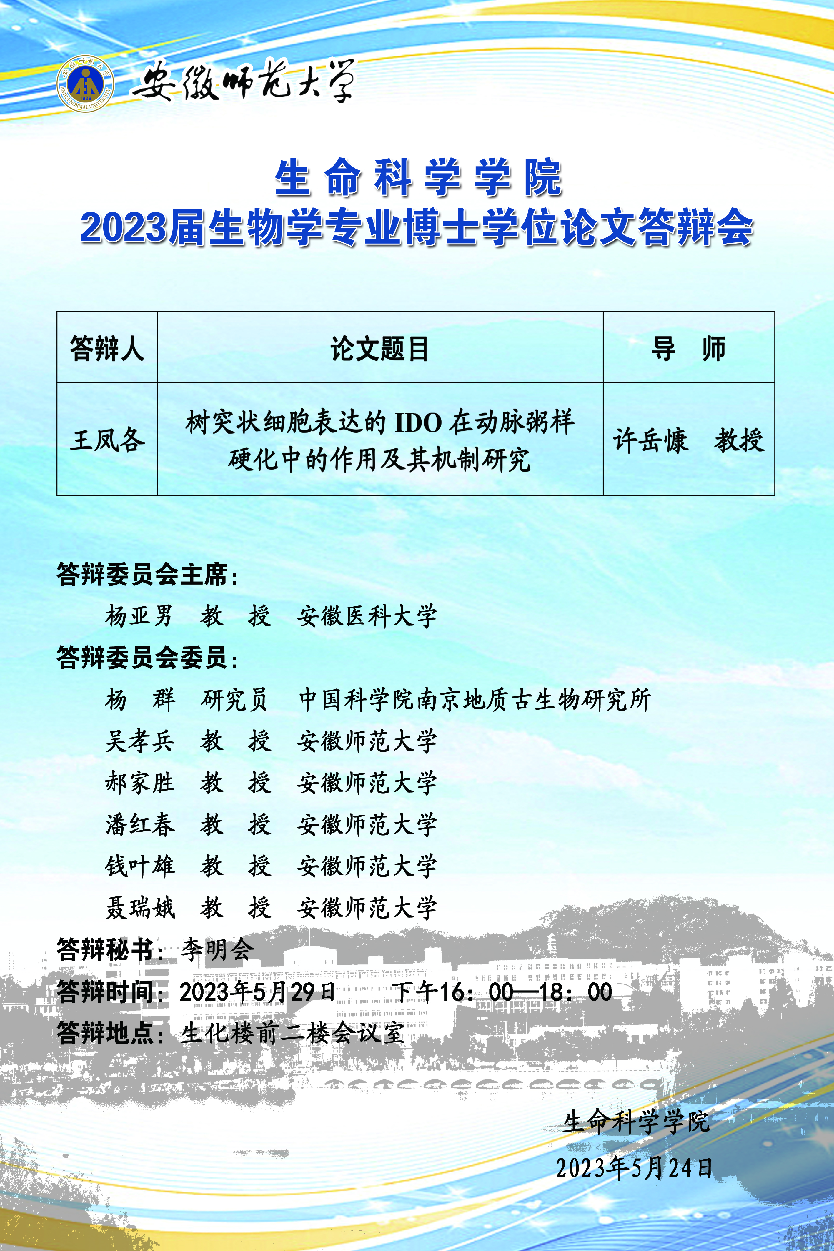 3044am永利集团官网2023届生物学专业博士学位论文答辩会(二)