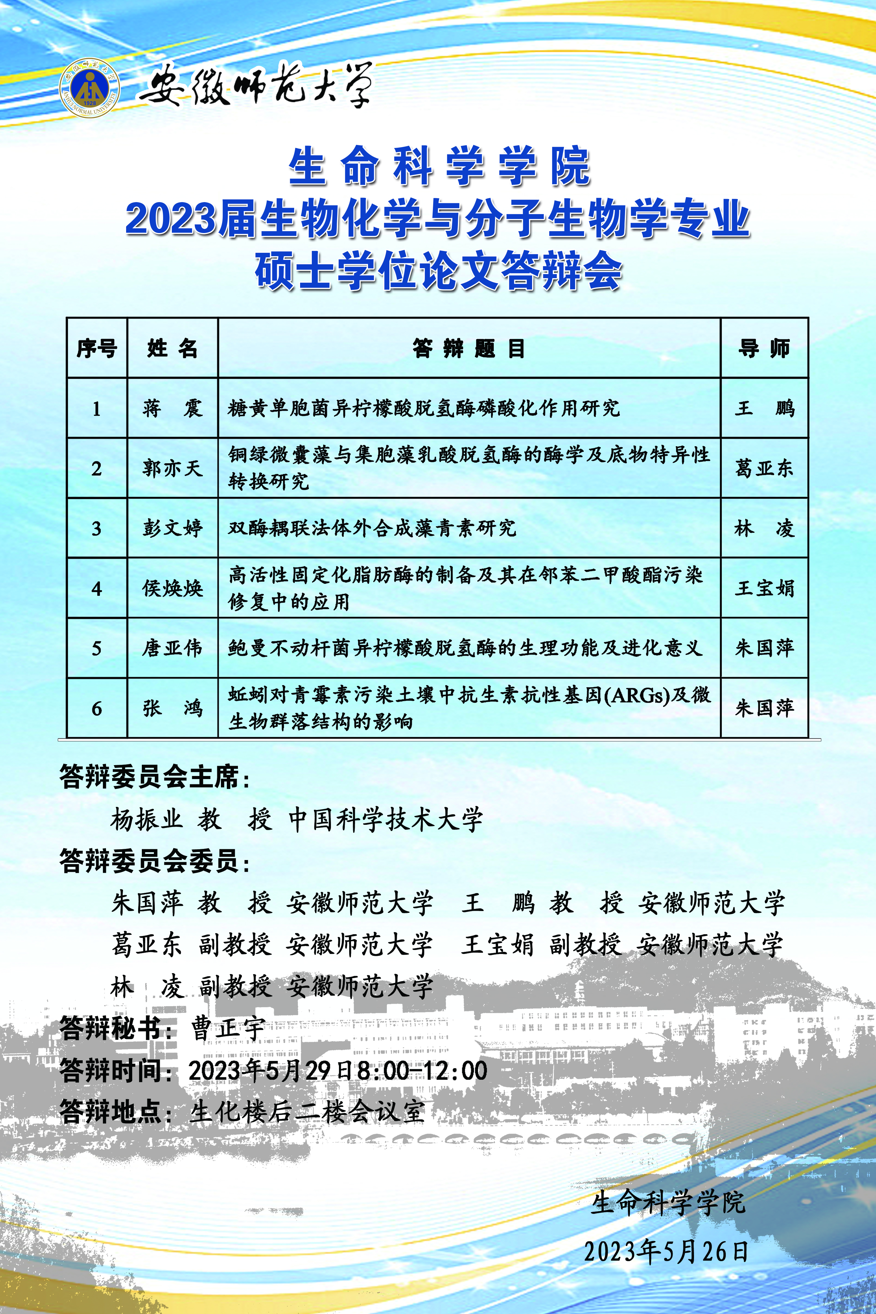 3044am永利集团官网2023届生物化学与分子生物学专业硕士学位论文答辩会