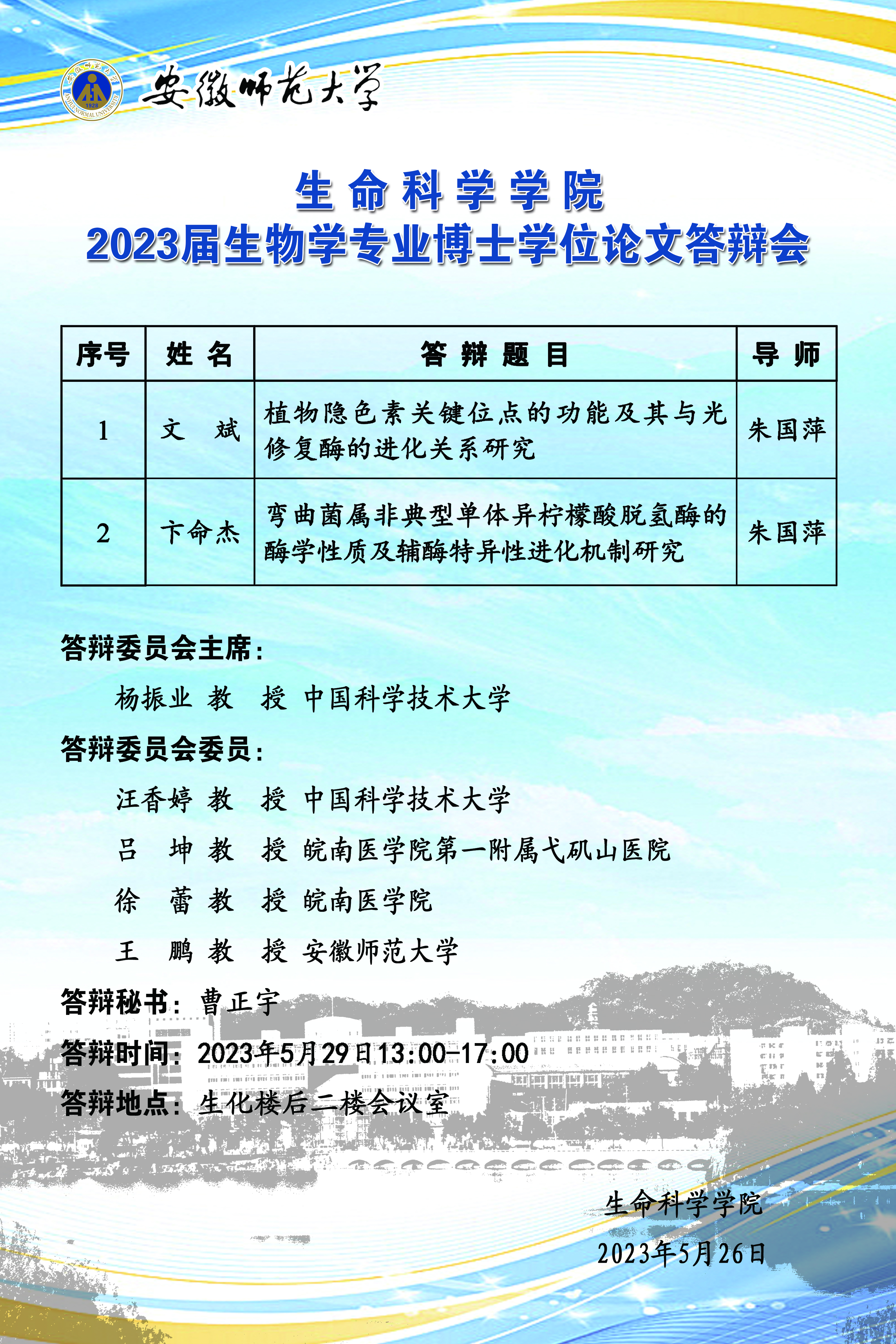 3044am永利集团官网2023届生物学专业博士学位论文答辩会(四)