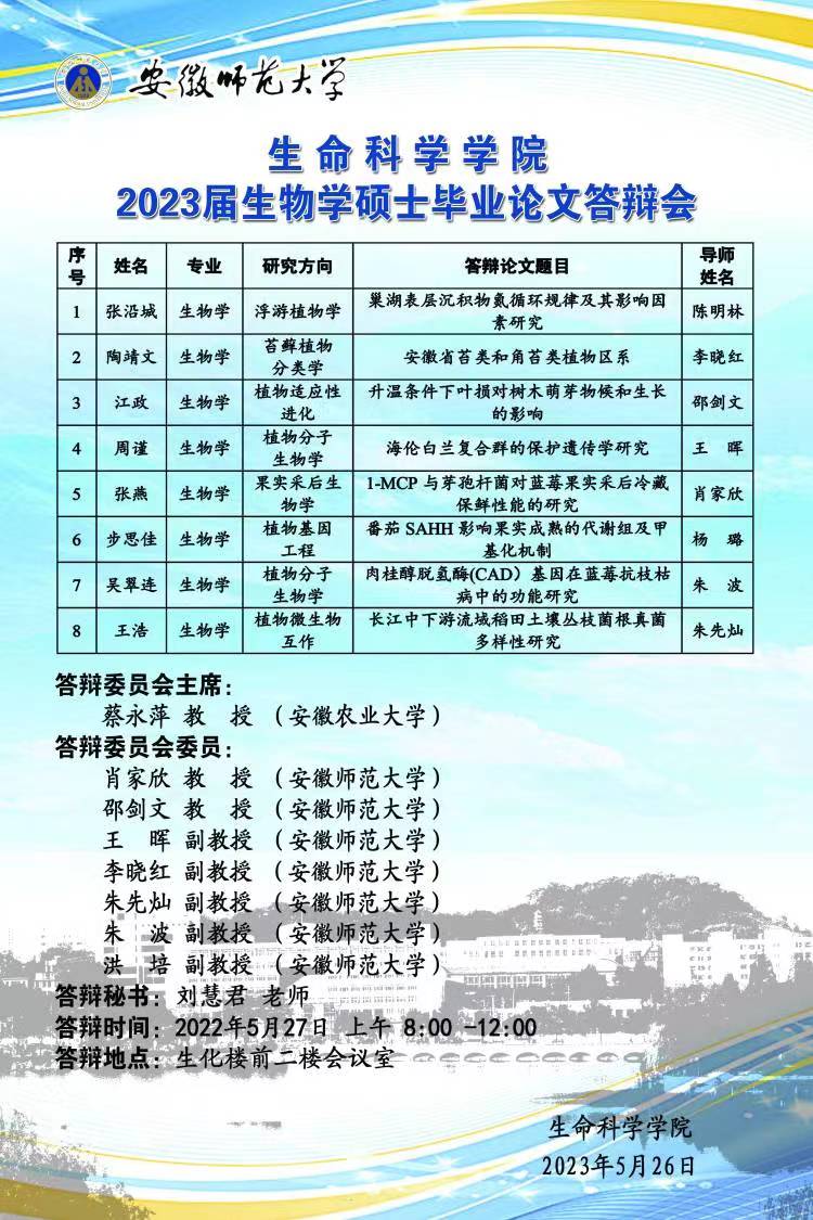 3044am永利集团官网2023届植物学专业硕士学位论文答辩会