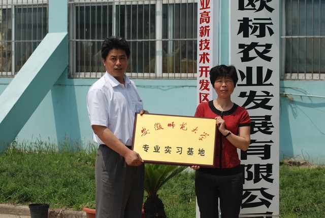 仪式上,席贻龙院长与芜湖鲁扬园艺有限公司总经理杨健生、芜湖欧标农业发展有限公司副总经理王冬梅共同签订了校企合作建立校外专业实习基地协议,学院党委书记袁兴龙与公司负责人共同为基地挂牌,学院副院长吴海龙为杨健生、王冬梅颁发校外实习指导教师聘书。随后,校企双方就实习基地建设、培养创新人才等内容进行了深入交流。席贻龙院长指出,校外专业实习基地可以切实提高学生的专业素质和综合能力,培养适应我国园艺产业未来发展需要的人才,同时对促进高校与企业产、学、研结合,共同推进经济社会发展具有重要意义。公司负责人分别介绍了公司的发展运营状况,对学院高度重视人才培养的行为表示赞赏,同时希望在“优势互补、互惠互利、互相支持、协作发展”的原则下,在园艺专业本科大学生培养、企业在职科技人员学历教育、合作研究、项目申报等方面开展全方位合作与交流。