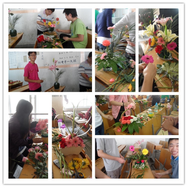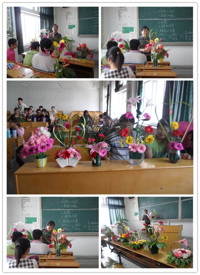为提高园艺专业学生的创新意识和动手实践能力,培养同学们发现美创造美的能力,5月15日,在涂传林老师和吕国胜老师的组织指导下,2009级园艺专业开展了一次别开生面的插花实践活动。学院教师贾瑞和高轩受邀莅临此次活动。