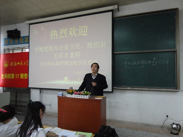 沐浴着党的光辉,接受着党的洗礼。4月14日,生科院第17期入党积极分子培训班在物理楼3302教室举行《中国共产党的组织制度和纪律》专题学习,学校党校办公室主任、正处级组织员王有才老师应邀为学员们授课。