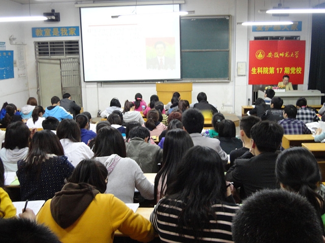 4月21日,生科院第17期入党积极分子培训班全体学员在物理楼3401教室共同学习了《中国共产党的宗旨》,学院团委书记汪倩倩老师应邀为学员授课。