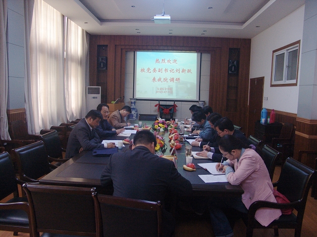 4月11日上午,校党委副书记刘新跃在校办公室副主任张伟、宣传部副部长詹剑锋的陪同下来永利调研,学院党政领导班子参加调研汇报会,院党委书记袁兴龙主持调研会。