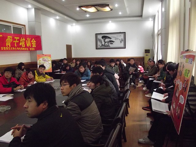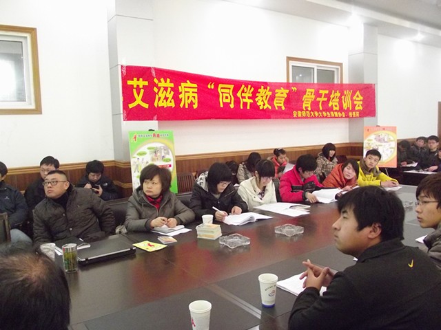 预防艾滋病青年同伴教育培训简称“同伴教育”,内容包括红十字运动基本知识、艾滋病流行趋势、性病与艾滋病、人体生殖系统解剖知识、同伴压力与交流技巧、学习避免过早发生性行为的处理方法、检测的利与弊、关心帮助艾滋病病毒感染者和艾滋病病人等内容。芜湖市大学生艾滋病“同伴教育”活动由芜湖市疾控中心提供指导和资金资助,我校为长期合作单位,校大学生保健协会具体承办。活动旨在通过培训让学生骨干进一步认识艾滋病,掌握艾滋病的重点防治知识及技能,由其在大学生中做系统的同伴教育,传播正确的防治知识,从而达到有效预防艾滋病的目的。 (大学生保健协会 王玲)