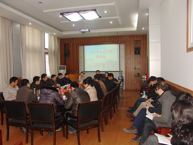 在听取汇报交流后,学工部部长、学生工作处处长台启权作了发言,他首先向学院学工队伍表示慰问,对学院领导重视学生工作、关心学生成长表示感谢。他指出,生科院2011年度学生工作有思路、有举措,工作扎实,成果丰硕;学院学风优良,考研录取率位居全校前列;创新教育、创业教育和环保教育等工作富有特色。接着,他就学生工作谈了自己的几点思考和体会,一是正确认识学生工作的重要地位,学生工作是学校育人工作的有机组成部分,做好学生工作可以有效保障正常的教学秩序,保障学生正常的学习和生活秩序,保障其他工作有序开展。二是准确把握好学生工作的任务和要求,学生工作的任务是教育、管理、服务和建设,教育要科学化,管理要规范化,服务要人性化,建设要专业化;学生工作要以安全稳定为底线、以成人成才成功为主线、以实现学生充分就业为生命线、以校园精品文化活动为风景线、以廉洁自律为红线。三是明确考核学生工作的指标要求,努力实现高毕业率、高就业率、高资助率,降低责任事故和违纪现象的发生,切实提高学生、家长和社会的高满意度。四是努力掌握学生工作的方法和艺术,注意针对不同年级不同类别的学生做好分类引导,积极发挥典型示范作用,注重感情融入、行动深入,增强理论研究和创新意识,努力提高学生工作的科学化水平。
