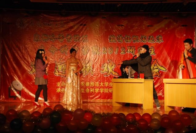 12月20日晚,由生科院研究生会主办的研究生2012年“迎新生、迎新年”文艺晚会在赭山校区团委多功能厅成功举行。院党委副书记周伍、副院长汪鸣,研究生辅导员黄永杰,研究生学院管理办公室主任李靖宇、研究生导师代表及300名研究生观看了晚会。