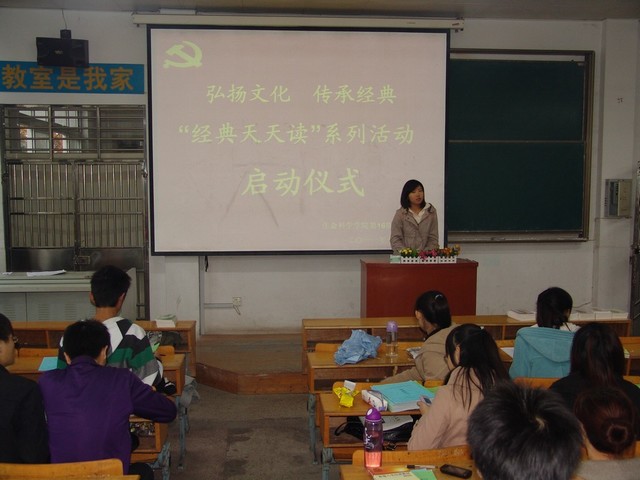为庆祝建党九十周年,深入贯彻十七届六中全会精神,进一步传承和弘扬传统文化,11月19日,3044am永利集团官网第16期入党积极分子培训班在物理楼3302教室举行“经典天天读”系列活动启动仪式。培训班班主任李古州及全体学员参加了仪式。仪式由班长刘君忆主持。