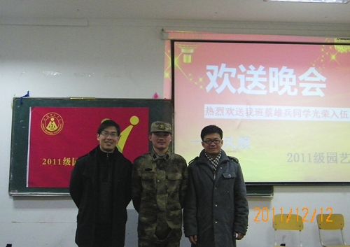 此次欢送会使园艺专业同学之间的感情更加深厚,表达了同学们对蔡雄兵同学的美好祝福,希望蔡雄兵同学能在从军征途上一帆风顺,报效祖国,回报社会,成为优秀大学生士兵。