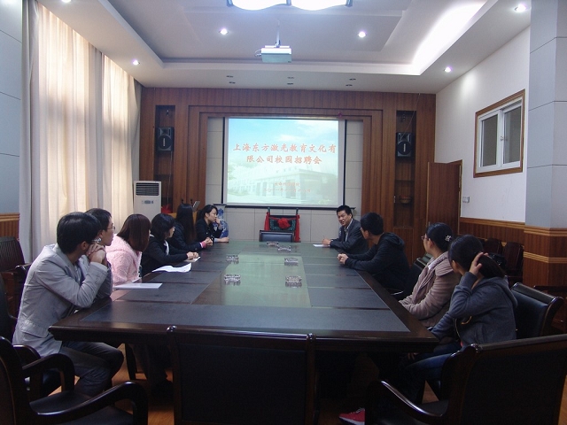 11月18日下午,上海东方激光教育文化有限公司应邀来生科院举行校园招聘会,院党委副书记周伍亲切接待了上海东方激光招聘主管孙琼琼,业务部赵小珍、廖景云和招聘顾问毛老师一行,学院近20名应届毕业生参加了招聘会。