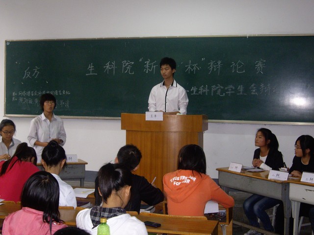 10月16日下午,3044am永利集团官网学生会在教学楼1210教室举行新生杯辩论赛。院学生会主席陈东升以及09、10级的辩论队骨干应邀担任评委。11级辩论队新成员全部参加比赛。