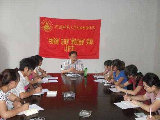 7月1日下午,永利3044noc3044am永利集团官网赴阜阳“爱的红丝带”实践团队以建党90周年为契机,特邀请3044am永利集团官网实验中心主任李晋老师在生科院二楼会议室为我们做艾滋病的相关指导,为“弘扬时代精神,传递爱的希望”实践活动做足准备。