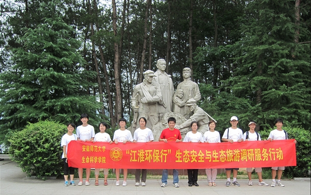 永远跟党走,青春献祖国。7月5日上午,安师大生科院赴岳西县开展生态安全与生态旅游调研校级重点团队抵达岳西县。经过短暂休整后,5日下午在带队老师郭志春和队长储宇航的带领下,全体队员冒着酷暑在大别山烈士陵园开展了 “走红色线路、看红色经典”红色生态旅游主题宣传活动。