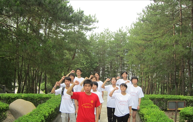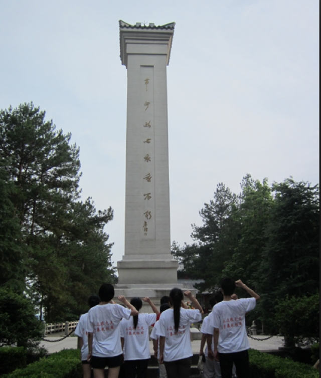 大别山烈士陵园座落在大别山腹地的岳西县城,是全国重点烈士纪念建筑物保护单位、安徽省爱国主义教育基地和安徽省国防教育基地,也是安徽省重要红色旅游景点。团队队员在烈士陵园解说员的带领下,从烈士群雕向南拾级而上,行至雄伟的革命烈士纪念碑前,纪念碑的正面镌刻着朱德总司令亲笔题写的“革命烈士永垂不朽”八个鎏金大字。在人民英雄纪念碑前,同学们重温大别山地区红色革命历程,并高举右手向英雄宣誓,坚决拥护中国共产党的领导,为共产主义事业而奋斗终身!