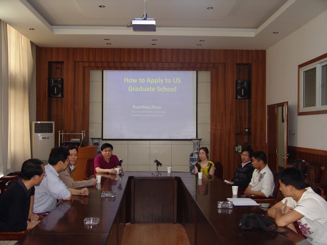 5月26日下午,应生科院邀请,我校81级校友,美国南达科达州立大学生物学与微生物学系副教授周阮宝博士和谷丽萍博士,前来学院分别做了题为《How to Apply to US Graduate School》和《How to Be Successful in US Graduate School》的学术报告。