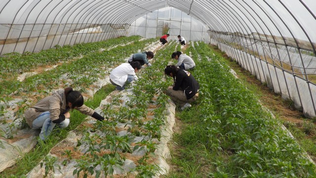 之前,院学生会部分成员走进南陵大浦生态园,进行了参观实践活动。大浦生态园为国家级现代农业示范区、国家级生态示范区、生态省建设综合基地。作为农业功能拓展的先行区,该生态园成为全国农业健康高效发展的样板。园内的技术员侯老师带领大家参观了馆内农业科技成果和现代农业装备,并做了细致介绍。生态园中品种新奇的水果蔬菜、环保先进的灌溉、通风、发电装置让同学们增长了见识,开拓了视野,切身感受到生态农业的魅力。随后,经技术员的指导,同学们走进蔬菜大棚开始进行“辣椒打岔”工作,全身心投入到劳动过程中。